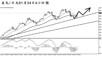美元兌日元短線急速下挫,將最近的一條上升趨勢線跌破。匯價并沒有能夠繼續(xù)下行挑戰(zhàn)87.75的4小時圖道氏低點支撐,中線的漲勢仍然延續(xù)。本周日本央行祭出了大規(guī)模的寬松貨幣政策,此后匯價在88.00上方尋得支撐重新爆發(fā)多頭動能,只要不重新跌破88.30的支撐線,后市可繼續(xù)順大勢看跌日元。