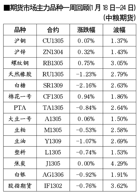 期貨市場(chǎng)主力品種一周回顧[1月18日-24日]