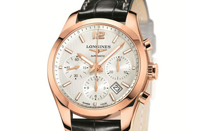 全新的康鉑系列的加入為浪琴表的經(jīng)典系列新添一道美麗風(fēng)景,為其在全世界贏得了聲譽(yù)和成功。這款計(jì)時(shí)秒表直徑41毫米,玫瑰金表殼,搭配黑色鱷魚皮表帶,內(nèi)置L688導(dǎo)柱輪機(jī)心。銀色表盤刻有1個(gè)阿拉伯?dāng)?shù)字刻度和11個(gè)夜光小刻度,顯示時(shí)、分,9時(shí)位置設(shè)小秒針,30分鐘累計(jì)表盤設(shè)于3時(shí)位置,12小時(shí)累計(jì)表盤設(shè)于6時(shí)位置,日期顯示窗設(shè)于4:30分位置。與康鉑系列所有表款一樣,這款腕表防水功能達(dá)5個(gè)大氣壓,螺旋式表背配以藍(lán)寶石水晶。