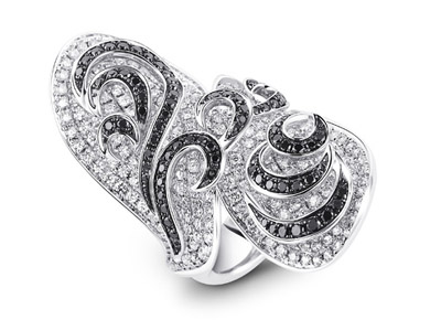 Farfalla翩蝶系列正是對(duì)戀人的美好祝愿。簡(jiǎn)約破格的設(shè)計(jì),融合了清雅簡(jiǎn)潔且立體流麗的線條,有別于坊間色彩繽紛的花蝶鉆飾,整套系列以白鉆及黑鉆作為主調(diào),更講究黑白兩鉆的分布及具層次感的配搭:白鉆代表純潔無瑕,黑鉆則予人神秘高貴的感覺。