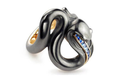Faberge設(shè)計(jì)的靈蛇珠寶曾經(jīng)帶給過(guò)我們無(wú)限的驚喜和美好回憶。而“蛇”圖案本身也是一個(gè)在珠寶領(lǐng)域中被反復(fù)使用和重復(fù)出現(xiàn)的設(shè)計(jì)主題。這次Faberge帶來(lái)的充滿異國(guó)情調(diào)的全新靈蛇系列珠寶,其創(chuàng)作靈感原是來(lái)自于俄國(guó)民間的一個(gè)童話故事,故事講述的是一位姑娘愛(ài)上并且嫁給了一個(gè)可以變成人形的靈蛇童話。而這個(gè)充滿戲劇性的高級(jí)雕刻珠寶,是由黃金,白金和純銀制成,在靈蛇蜿蜒的身軀上更是附上了藍(lán)寶石的華麗鑲嵌,并且畫(huà)龍點(diǎn)睛的加入了蛋白石的元素,讓整個(gè)珠寶呈現(xiàn)出充滿靈動(dòng)感的現(xiàn)代氣息。