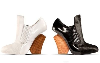 2013春夏系列的鞋款,本季最大的奇趣亮點就在于那些幾何造型的粗木跟設計上,上腳舒適又極具視覺搭配效果。在色調上則選擇了黑與白以及點綴其中的湖水藍,頗為百搭。