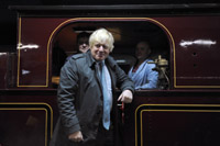 在英國(guó)倫敦穆?tīng)柹w特地鐵站,倫敦市市長(zhǎng)鮑里斯·約翰遜與蒸汽火車的駕駛員合影。新華社/法新 |