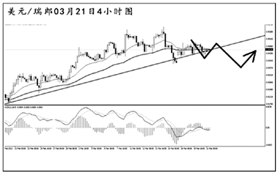 美元兌瑞郎小幅刺破了4小時(shí)圖的上升趨勢(shì)線,現(xiàn)正在考驗(yàn)此趨勢(shì)線的支撐強(qiáng)度。日線圖上看,由于匯價(jià)此前并沒有升破0.9510的阻力,上行空間未被打開,也在一定程度上制約了匯價(jià)的進(jìn)一步上攻。短線匯價(jià)面臨選擇,如果重新回到0.9510上方才有機(jī)會(huì)繼續(xù)做多,否則跌破趨勢(shì)線后則有很大的下調(diào)風(fēng)險(xiǎn)。