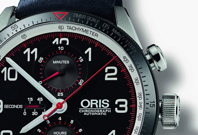 表背雋刻獨特的”領結(jié)彎”的圖案,象征著Calobra無法預知的蜿蜒道路。黑色真皮表帶搭配搶眼的紅色打孔,反映了老爺車競賽的豐富多彩歷史。Oris