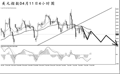 美元指數(shù)創(chuàng)出短線新高之后持續(xù)下挫,已經(jīng)將大級別的上升趨勢線跌破。雖然日線圖均線系統(tǒng)仍然保持依托的狀態(tài),但美元指數(shù)的上沖動能明顯不足。4小時(shí)圖持續(xù)發(fā)生MACD的頂背離信號,預(yù)計(jì)美元指數(shù)仍有再度下落的風(fēng)險(xiǎn)。短線關(guān)注82.00一線支撐,若價(jià)格跌破此位置,將打開進(jìn)一步的下行空間。