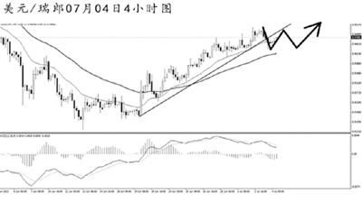 ▲美元兌瑞郎的上漲斜率平緩,但匯價保持著完好的沖高節(jié)奏。短線連續(xù)發(fā)生了MACD的頂背離信號,匯價小幅下調(diào),目前已將4小時圖的上升趨勢線小幅跌破,但均線系統(tǒng)仍然保持完好的依托效果。短線需關(guān)注0.9530的高點(diǎn)阻力,美元兌瑞郎若想繼續(xù)走高,必須盡快升破此點(diǎn)位,否則匯價將面臨較為明顯的下調(diào)風(fēng)險。