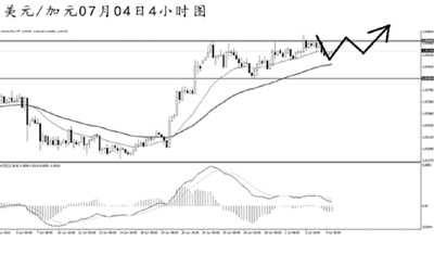 ▲美元兌加元在高位盤整的時間已接近兩周,匯價小幅創(chuàng)出新高,但由于幅度有限,并沒能直接延續(xù)主上漲趨勢。4小時圖的均線系統(tǒng)依托排列,上方的強(qiáng)阻力在周線圖高點(diǎn)1.0655,能否升破此位置對于后市匯價的上漲至關(guān)重要。短線仍然面臨調(diào)整,投資者可等待匯價再度突破區(qū)間上沿之后再行入場做多。