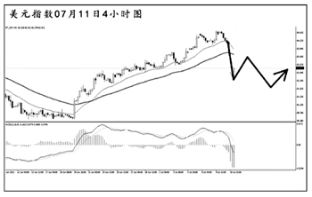 美元指數(shù)兩度沖擊84.45的前方高點(diǎn)阻力,但都沒能站穩(wěn)在此位置上方。短線受到伯南克言論的影響,日線圖收出十分罕見的實(shí)體大陰線。4小時(shí)圖的上升趨勢(shì)線和道氏低點(diǎn)支撐都被有效跌破,主趨勢(shì)已轉(zhuǎn)為向下。目前價(jià)格正在考驗(yàn)此前上漲的50%回調(diào)位,能否順利跌破82.60一線成為后市美元指數(shù)繼續(xù)下行的關(guān)鍵。