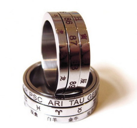 戒指由一個母環(huán)和三個子環(huán)組成,子環(huán)上分別刻有30個日期、七天的星期英文和12個月的英文簡稱,這樣可以準確定位當前這一天的記錄,轉動子環(huán)即可組成一個專屬的幸運日。