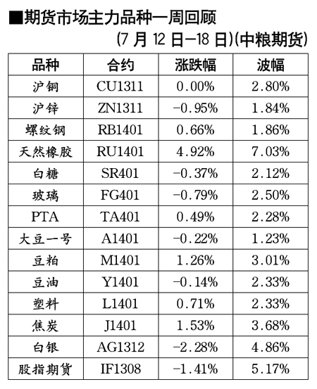 期貨市場主力品種一周回顧[7月12日-7月18日]