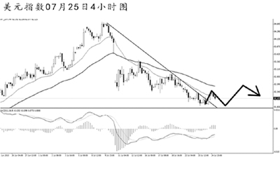 美元指數(shù)連續(xù)小幅創(chuàng)新低,短線MACD發(fā)生了角度明顯的底背離信號(hào),下跌動(dòng)能持續(xù)減弱。4小時(shí)圖均線系統(tǒng)保持良好的壓制效果,主趨勢(shì)仍然向下。但由于下降趨勢(shì)線已被小幅升破,美元指數(shù)面臨一定的上調(diào)壓力。關(guān)注82.40,只有價(jià)格站穩(wěn)在此位置上方,美元指數(shù)才能展開較為強(qiáng)勁的反彈走勢(shì)。