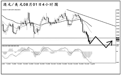 美元兌日元此前經(jīng)過了半個多月的盤整走勢之后強力走低,并且跌破了98.20的支撐。4小時圖上看,匯價有形成三波調(diào)整的可能,若成立,匯價有望從97.60一線逐步發(fā)起反彈。目前美元兌日元低位震蕩,下跌勢頭已明顯放緩。小時圖多頭力度重新占據(jù)主導,預計匯價有發(fā)起上攻的動力,可按照謹慎看反彈的思路對待。