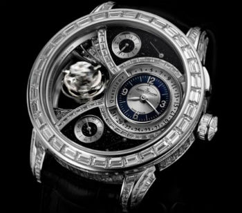 長(zhǎng)方形切割美鉆環(huán)繞著白金表殼,Duomètre Sphérotourbillon