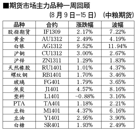 期貨市場(chǎng)主力品種一周回顧[8月9日-8月15日]