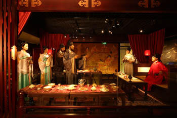 博物館以實物和電影音像展示,中華飲食文化源遠(yuǎn)流長。遠(yuǎn)古三皇五帝教民生產(chǎn),解決氏族吃飯問題,而受民尊崇。軒轅黃帝,“藝五種、撫萬民”,對中國農(nóng)業(yè)發(fā)展做出重要貢獻(xiàn),成為中華民族的文明始祖。夏商周時,階級產(chǎn)生,帝王講究禮樂,富有四海,所食之豐富之優(yōu)良,超過一般百姓。