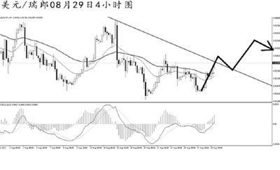 ▲美元兌瑞郎維持低位盤整的態(tài)勢,在大級別下降趨勢線的壓制作用下,匯價反彈力度有限。4小時圖發(fā)生了多次MACD底背離的信號,但角度并不明顯。目前需首先關注趨勢線的阻力強度,若成功升破,匯價有望結束震蕩的走勢,逐步向道氏高點0.9395一線發(fā)起沖擊。