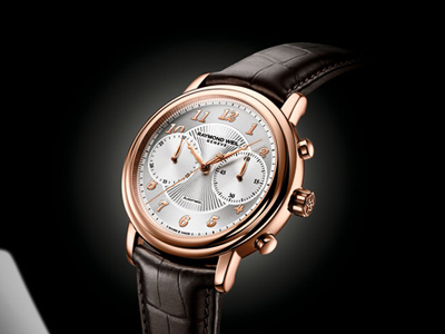 計時裝置位于三點鐘和九點鐘位置,指針是雷蒙威最經(jīng)典的款式,鍍以玫瑰金,和金色的數(shù)字交相輝映。表殼直徑為41毫米,最后搭配經(jīng)典的棕色鱷魚皮表帶,賦予高貴陽剛之氣。