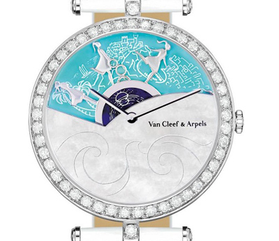 Arpels(梵克雅寶)的詩意復(fù)雜功能系列腕表。梵克雅寶的腕表早已超越了單純的對審美的追求和技術(shù)創(chuàng)新的范疇,她總是能以浪漫動(dòng)人的創(chuàng)想巧妙的詮釋時(shí)間之美,這種詩意的詮釋已成為梵克雅寶的真正標(biāo)志,沒枚腕表的設(shè)計(jì)均力求將這種詩意變?yōu)榭梢暤乃囆g(shù)品,向人們訴說著如夢似幻的動(dòng)人故事。