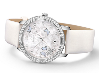 Omega(歐米)茄碟飛Prestige腕表的表面雍容典雅,設(shè)計從大自然的善與美萃取靈感,再配上條紋緞面皮革表帶,淳美造型扣人心弦。