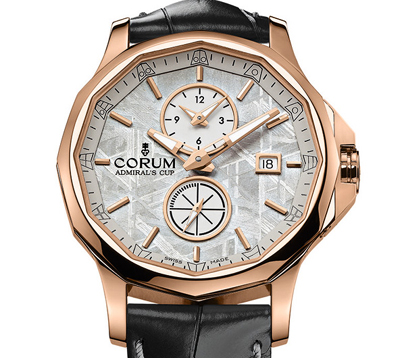 腕表沿用海軍上將杯系列經(jīng)典的十二邊形表殼,隕石表盤在小時刻度指示和鍍上5N紅金夜光指針的襯托下,綻放優(yōu)雅光采。第二時區(qū)顯示盤設(shè)於12時位置,而掃式小秒盤設(shè)於6時位置,日期視窗顯示則位於3時位置。腕表搭載的CO