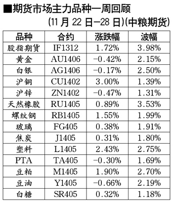 農(nóng)產(chǎn)品方面,CBOT美豆在1280-1300有一定支撐,M1405在3280-3300有一定支撐,有向3400一線運行可能;Y1405底部支撐明顯,預計在7200-7220有一定支撐,有向7380一線運行可能;SR1405買入信號出現(xiàn),4980-5000有一定支撐,有向5100一線運行可能;印度尼西亞消息顯示,2014年印尼棕櫚油產(chǎn)量可能比上年增長6%,達到2850萬噸。近期棕櫚油進入消費淡季,P1405預計將在6200-6400區(qū)間波動;RM1405在2400一線有一定支撐,有向2500一線運行可能。期指IF1312有向2500-2600區(qū)間運行可能。