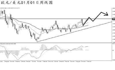 美元指數(shù)在過去的一年中兩次創(chuàng)出新高,但2012年7月份的高點84.05并未被有效升破。周線圖上看,均線系統(tǒng)被反復穿越,價格保持大規(guī)模盤整的走勢。下方的重要支撐在78.55,若美元指數(shù)強力跌破此位,后市將展開更為猛烈的下調(diào)。日線圖主趨勢仍然向上,但在今年的上半年,美元指數(shù)有進一步探底走低的風險,此后重新反彈上行。但美元整體的弱勢在短時間內(nèi)很難發(fā)生改變。