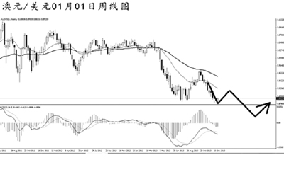美元兌瑞郎于2013年5月觸及高點0.9840,并在12月跌至0.8800一線,全年波動幅度1000點上下。美元兌瑞郎在2010年11月跌回至平價水位下方之后始終未能重新漲破1.0000,匯價保持震蕩走弱的節(jié)奏。美元兌瑞郎在跌破0.8930之后,下方支撐將直接指向0.8565。日線圖MACD發(fā)生了角度明顯的底背離信號,預計今年第一季度匯價將發(fā)生一定程度的上調(diào),但若無法漲破道氏高點0.9250,后市仍將延續(xù)中線的下跌走勢。