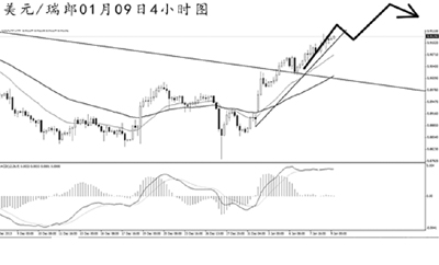 美元兌瑞郎的上沖勢頭迅猛,最近一周多的時(shí)間有3天收出實(shí)體大陽線。日線圖的下降壓力線已被升破,上方強(qiáng)阻力在0.9250。短線上漲斜率陡峭,匯價(jià)繼續(xù)走高的概率很大。小時(shí)圖MACD持續(xù)發(fā)生了角度明顯的頂背離信號(hào),但在趨勢線跌破之前,不宜激進(jìn)看空。預(yù)計(jì)匯價(jià)小幅調(diào)整之后將延續(xù)上漲勢頭。