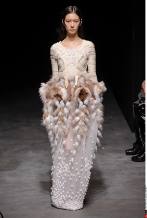 法籍華裔設(shè)計(jì)師殷亦晴(Yiqing Yin)設(shè)計(jì)的2014春夏高級定制女裝秀日前在巴黎時(shí)裝周上舉行。圖為模特在展示殷亦晴的時(shí)裝作品。