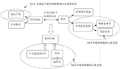 2014年鋼材市場的供需很可能呈現(xiàn)弱平衡狀態(tài),供給和需求均小幅上升,難有超預期表現(xiàn);影響價格的主要矛盾可能落在了成本和產(chǎn)業(yè)鏈利潤水平的變化上,產(chǎn)能過剩的鋼材市場弱勢格局中,市場關(guān)注的是成本的支撐以判斷價格的底部,那么礦價的波動很可能會是影響鋼價的主要矛盾。