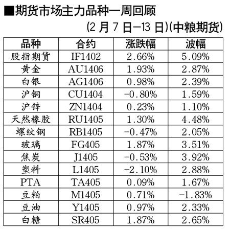 期貨市場(chǎng)主力品種一周回顧[2月7日-2月13日]