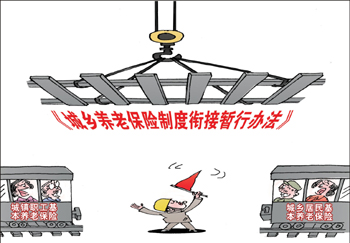 銜接 人力資源和社會(huì)保障部2月26日發(fā)布消息稱,經(jīng)國務(wù)院同意,人社部、財(cái)政部近日聯(lián)合印發(fā)了《城鄉(xiāng)養(yǎng)老保險(xiǎn)制度銜接暫行辦法》。這是繼國務(wù)院統(tǒng)一城鄉(xiāng)居民基本養(yǎng)老保險(xiǎn)制度之后出臺(tái)的又一項(xiàng)重要政策,主要是解決城鎮(zhèn)職工基本養(yǎng)老保險(xiǎn)與城鄉(xiāng)居民基本養(yǎng)老保險(xiǎn)制度兩大制度的銜接問題。新華社發(fā) 蔣躍新/作 |