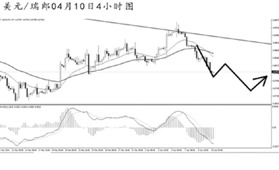 美元兌瑞郎小幅沖高之后受制于下降趨勢線的壓力強力下跌,日線圖連續(xù)收出實體陰線。目前匯價與前方低點0.8695還有一段距離,美瑞仍存在繼續(xù)下跌的空間。4小時圖主趨勢已轉(zhuǎn)為向下,MACD顯示空頭動能充盈,預(yù)計后市匯價有望展開一定程度的上調(diào),但在強勁的多頭力度爆發(fā)之前,需繼續(xù)看空美瑞。