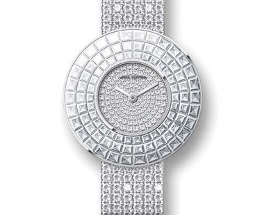 Absolu Riviere腕表則把珠寶工藝進(jìn)一步極致發(fā)揮,不僅僅是面盤,連指針以及表鏈都鋪上了明亮切割的鉆石。