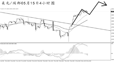 美元兌瑞郎短線匯價反彈上行。4小時圖匯價連續(xù)收出陽線,上漲斜率陡峭,短線面臨一定的下調風險,但后市繼續(xù)走高的概率較大。操作上仍以謹慎做多為主思路。