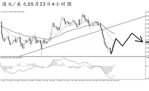 澳元兌美元將大級別上升趨勢線的支撐跌破后繼續(xù)走弱。日線圖上看,匯價已經(jīng)跌破了均線系統(tǒng)的依托位,漲勢遭遇到一定的挑戰(zhàn)。4小時圖連續(xù)收出實體陰線,雖然短線多頭力度重新展現(xiàn),但主下跌趨勢尚沒有發(fā)生改變。預計澳元后市仍有走弱風險,關注0.9200的支撐,匯價強力跌破此位置后可考慮繼續(xù)入場做空。