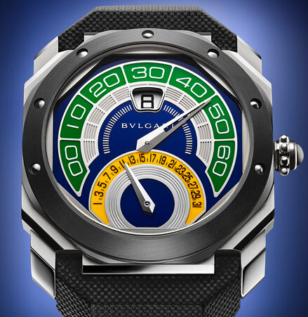 Bi-Retro腕表向巴西致意;設(shè)計(jì)上由巴西國旗的色彩組成,從各方面來看都是劃時(shí)代的創(chuàng)舉。這款Octo Bi-Retro