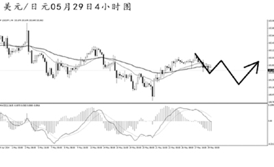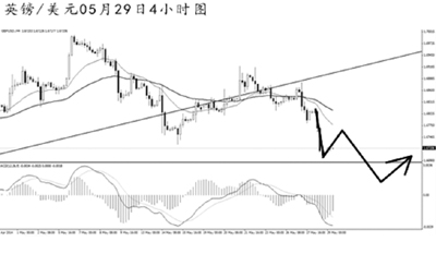 歐元兌美元跌破道氏低點支撐1.3670之后保持下跌節(jié)奏。日線圖均線系統(tǒng)空頭排列,下方的下一道強支撐在1.3475,歐元仍有較為廣闊的下跌空間。4小時圖MACD發(fā)生了角度明顯的底背離信號,但下降趨勢線的壓制作用仍然完好。預計短線歐元發(fā)生一定力度反彈的概率較大,但此后仍將以下跌走勢為主。