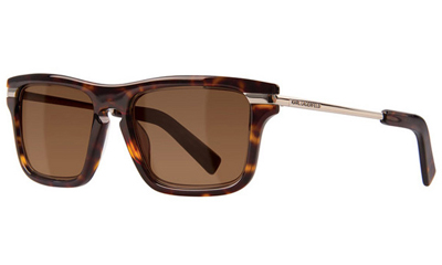 塑料配金屬的枕形眉架,營(yíng)造出優(yōu)雅的線條。前鏡框兩方綴以精致的金屬裝飾,與鏡臂上簡(jiǎn)約的品牌標(biāo)志互相配合,低調(diào)中不失時(shí)尚個(gè)性。系列備有亮青銅黑色、亮銀黑色、亮青銅色及亮淺青銅色。