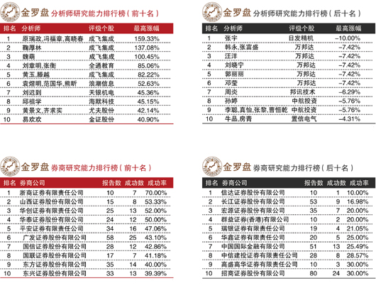 雖然6月市場上強(qiáng)勢股明顯增多,但是大盤總體表現(xiàn)欠佳,從金羅盤數(shù)據(jù)可見,分析師薦股成績差距較大,僅有五組分析師所薦股票在20日短線評測中錄得超過80%的漲幅,大部分分析師的薦股成績都集中30%至40%之間。伴隨創(chuàng)業(yè)板近期的反彈,券商分析師們在創(chuàng)業(yè)板股票推薦方面均有不俗表現(xiàn),三只創(chuàng)業(yè)板股票全通教育、天銀機(jī)電和海默科技的漲幅均幫助分析師進(jìn)入榜單前十。