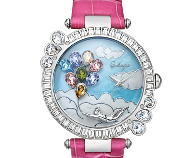 Balloon童話夢飛翔」系列,將每個人小時候曾幻想過能像小鳥般在蔚藍天際自由翱翔的夢想,栩栩如生的實現(xiàn)于腕表設(shè)計上。立體水晶別出心裁地幻化成七彩的小汽球,仿如伴您一起游歷浪漫的花都,遨游藍天白云的優(yōu)雅景致。只要您細意望著「Balloon