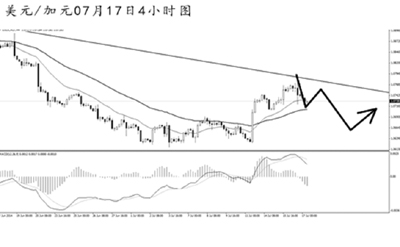 美元兌加元沖高后強力回落。4小時圖的道氏低點支撐在1.0710,預(yù)計匯價將首先沖擊此位置,若跌破,匯價將重新向1.0620的前方低點一線發(fā)起挑戰(zhàn)。