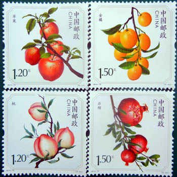 日前,中國(guó)郵政發(fā)行我國(guó)首套帶有水果香味的《水果(一)》特種郵票。該套郵票共4枚,分別為蘋(píng)果、桃子、石榴、金橘,全套面值5.4元。郵票印制時(shí)根據(jù)四種水果特有的果香增加了香味油墨,人們欣賞郵票時(shí)能聞到陣陣水果香味,用手輕輕摩擦郵票表面味道將更加濃郁。