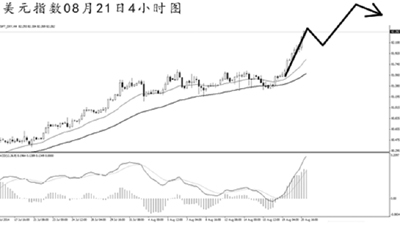 盡管耶倫此番在央行年會上的發(fā)言很有可能繼續(xù)“打太極”,但市場對美國經(jīng)濟的樂觀預(yù)期仍然在推高美元。美元指數(shù)經(jīng)過兩周的盤整再度強力沖高。從日線圖上看,價格連續(xù)收出實體陽線,多頭動能重新占據(jù)優(yōu)勢。上方強阻力在84.70,美元指數(shù)仍有較為廣闊的上漲空間。從4小時圖上看,MACD已經(jīng)進入到多頭動能充盈的階段,均線系統(tǒng)形成多頭排列。短線上漲斜率陡峭,預(yù)計美元指數(shù)小幅下調(diào)后仍然將以沖高走勢為主。