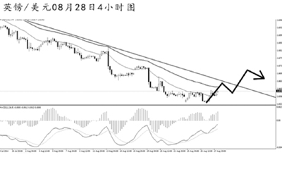 歐元兌美元自低位逐步反彈。4小時(shí)圖下跌動(dòng)能強(qiáng)勁,均線系統(tǒng)壓制排列。短線反彈勢(shì)頭已經(jīng)形成,但目前尚沒(méi)有構(gòu)筑出良好的次級(jí)趨勢(shì)調(diào)整。由于匯價(jià)的下跌斜率過(guò)大,后市仍面臨一定的上調(diào)壓力,但在暴發(fā)強(qiáng)勁的多頭力度之前,入場(chǎng)做多仍需謹(jǐn)慎。