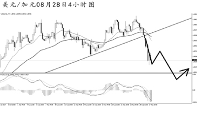 美元兌加元小幅創(chuàng)出新高之后強(qiáng)力下挫。經(jīng)過(guò)此波下跌,均線系統(tǒng)已經(jīng)形成了空頭排列,MACD顯示空頭動(dòng)能充盈,道氏低點(diǎn)1.0860被明顯跌破。短線發(fā)生了一定的動(dòng)能交替,預(yù)計(jì)后市仍有繼續(xù)下跌的風(fēng)險(xiǎn),逐步走向1.0720一線。
