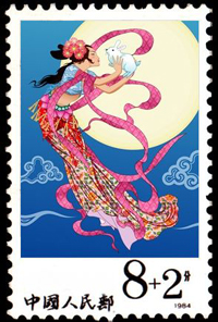 2007年8月30日,中國郵政發(fā)行一枚《中秋祝!穼S闷胀ㄠ]資信封,這也是我國發(fā)行的唯一一枚以月亮為主圖的郵資票品;2013年8月15日,中國郵政還發(fā)行一枚《團(tuán)圓》個性化服務(wù)專用郵票,附票圖案為嫦娥奔月。