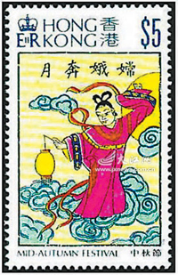 我國港澳臺三地郵政也都發(fā)行過有關(guān)中秋節(jié)的郵票,設(shè)計元素當(dāng)然也少不了中秋圓月。最早與中秋節(jié)有關(guān)的郵票,是臺灣于1966年9月29日發(fā)行的《民俗郵票》中的第三枚,以中國傳統(tǒng)繪畫的形式,展現(xiàn)嫦娥奔月。1975年7月31日,香港發(fā)行《香港節(jié)日》郵票一套3枚,其中“中秋節(jié)”一枚用七巧板拼成了一幅花燈明月圖,描繪出亮麗圓月下的金魚燈,展現(xiàn)出人們手提燈彩、歡度中秋的熱鬧景象,這在所有中秋節(jié)郵票中也是畫面最獨特的。1994年6月8日香港發(fā)行的《中國的傳統(tǒng)節(jié)日》郵票,其中第4枚“中秋節(jié)”主圖為“嫦娥奔月”,這也是香港迄今唯一以年畫形式設(shè)計的郵票。1981年10月1日,澳門發(fā)行《中秋節(jié)》郵票一套4枚,這是第一套真正為中秋節(jié)而推出的郵票,也是枚數(shù)最多的一套中秋節(jié)郵票。每枚郵票的主圖以宋體“秋”字為主圖,分別配以嫦娥奔月燈、葫蘆燈、八角燈、獅子燈,描繪出張掛燈彩、歡度中秋節(jié)的熱鬧畫面。