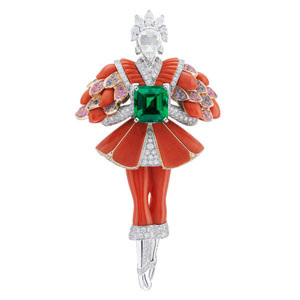 年代中期推出「仙子」胸針,旨在將女性的纖柔優(yōu)雅演繹至極。而以玫瑰型切割鉆石鑲嵌面部的設(shè)計更是恰到好處地雕琢與還原出芭蕾舞伶的花容月貌,盡顯世家的精湛工藝與獨特風(fēng)格。這些長著翅膀的嫵媚身影是幸福與希望的象征,也令眾多收藏家為之一見傾心。仙女們或手持魔法棒,或妝點珍貴的寶石頭飾,不僅成為